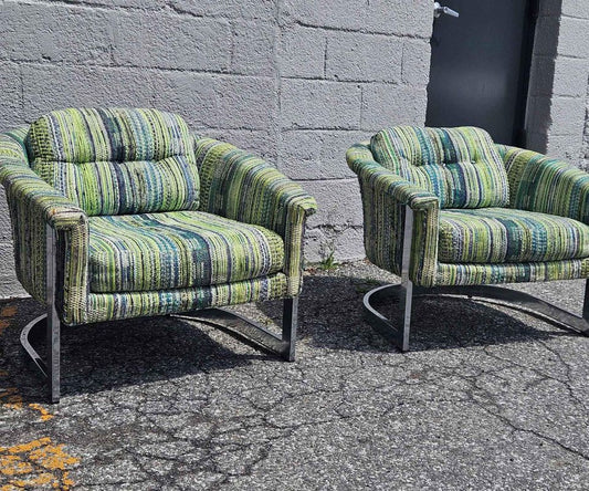 Mid Century Flatbar Barrel Back Chrome Chairs