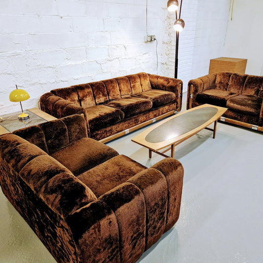 International Furniture Inc. Brown Crushed Velvet Sofa Set