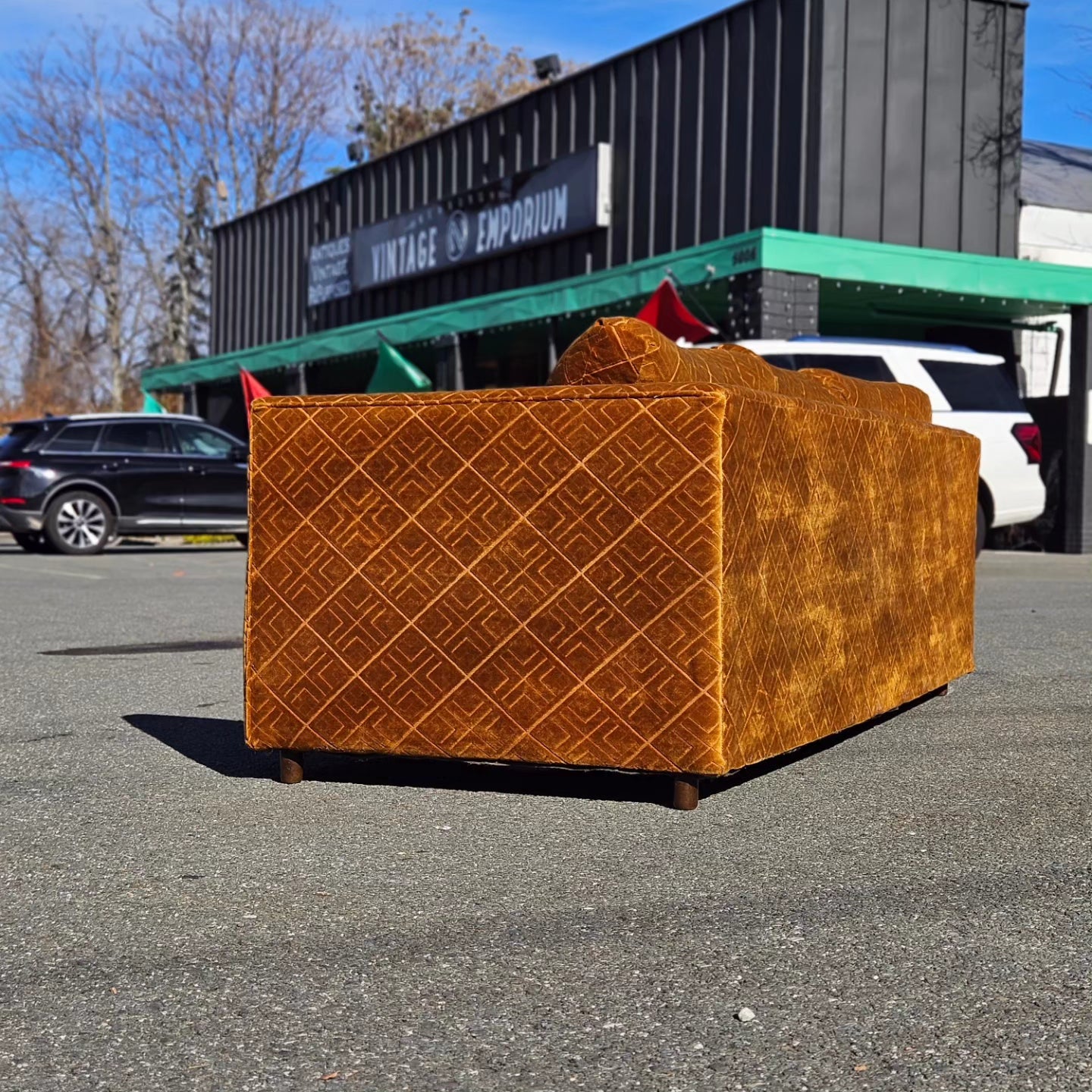 Burnt Orange Velvet Sofa