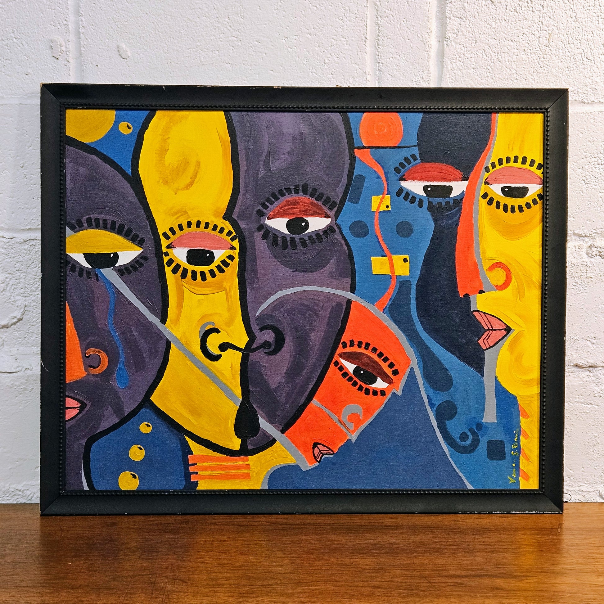 Abstract oil on canvas. Signed but uncertain of the artist. Canvas is in great condition. Frame is a little chippy. 26.5"H x 32.5"W in frame.