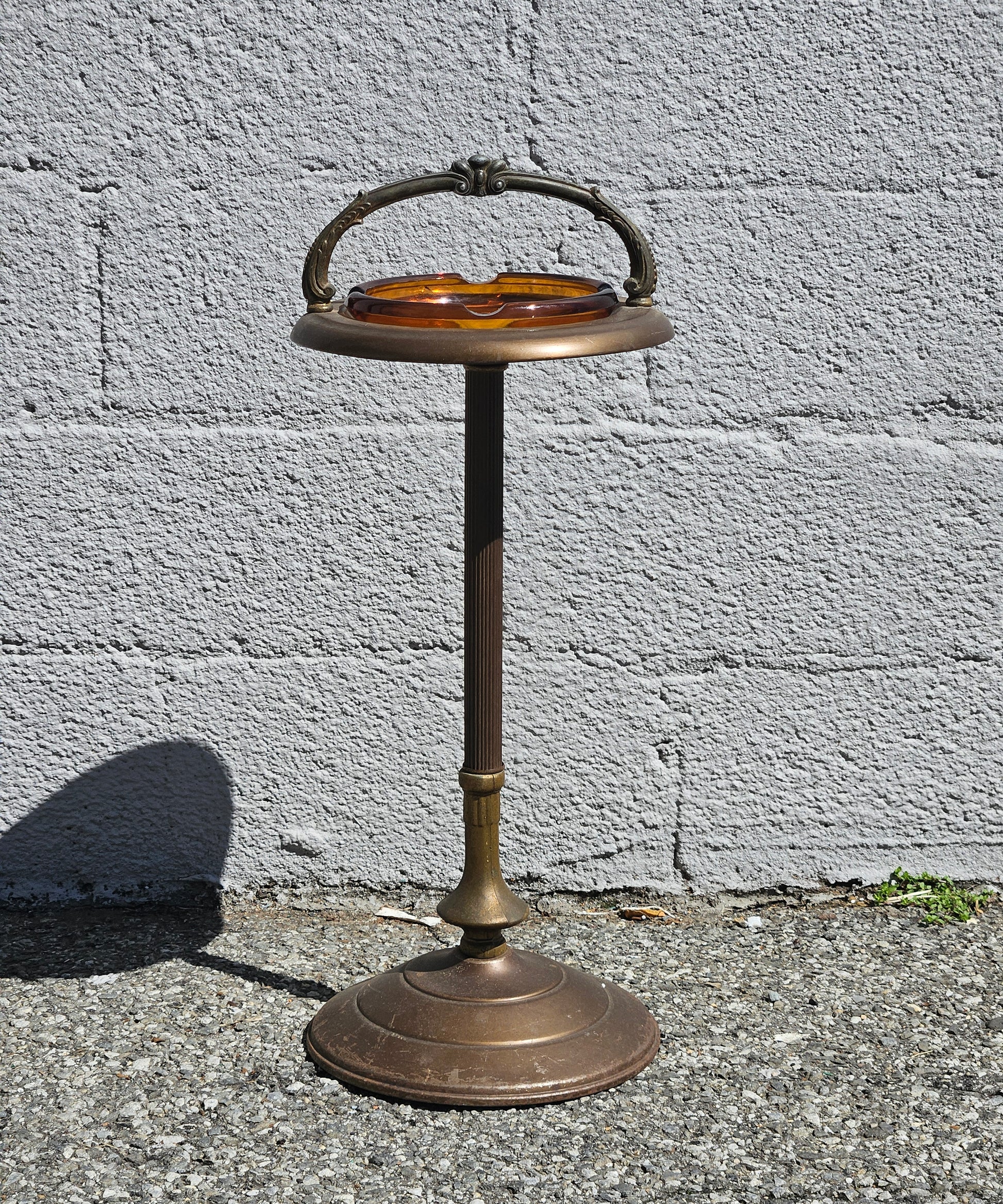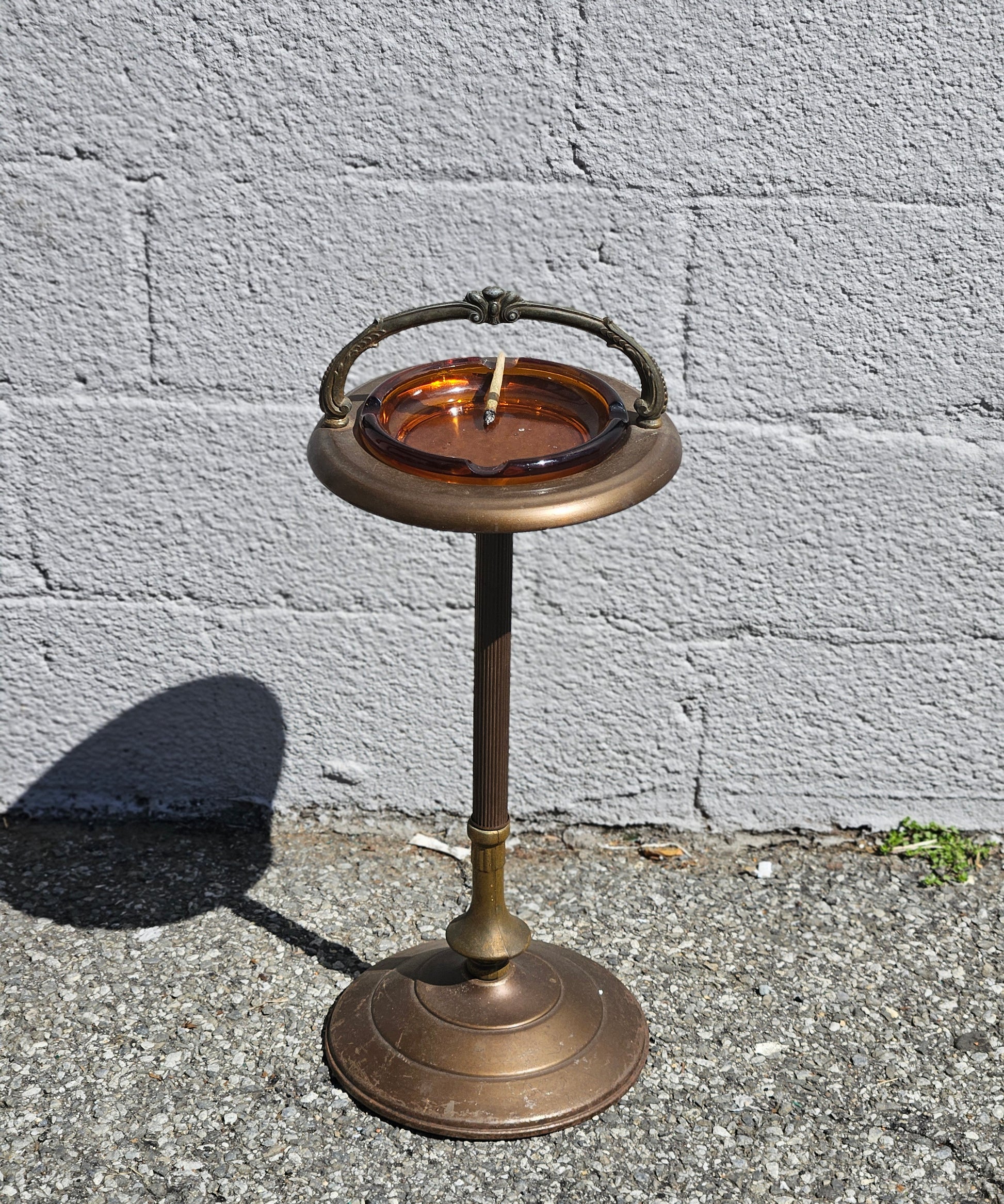 Brass & Amber Glass Standing Ashtray